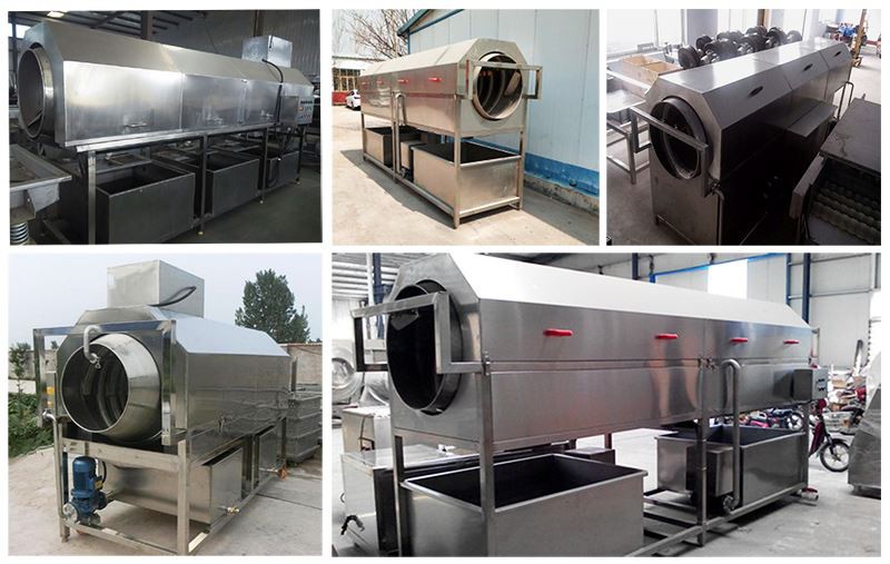 The drum roller washing machine is composed of frame, waterproof cover, roller, high-pressure spraying device, water collecting tank and driving device, etc. It is widely used for cleaning vegetables, aquatic products, red dates, jujube, carrots, apples, potatoes, potatoes etc.It is mainly adopted for washing fruits and vegetables growing in the soil with high cleaning efficiency and high original color retention .